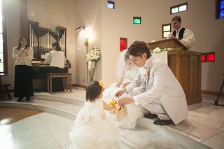 ご新婦様はその当時赤ちゃんだった『くるみちゃん』が歩いてリングガールが出来るようになるかを心配されていたので、