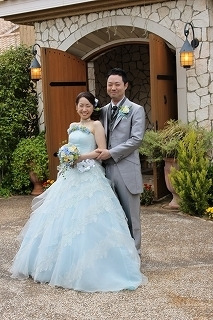 淡く清涼感のあるブルーをベースにした色ドレスは