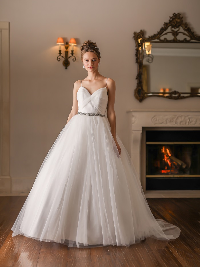 取り外し可能なウエストマークのビジューが少しきりっとした印象。