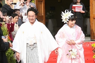「神前式だからバージンロードは歩けないけど、お父さんと一緒に歩きたい」