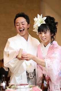 披露宴では和装にぴったりのミニ樽開きでゲストに皆様1卓1卓にご挨拶