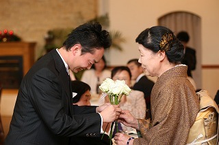 ご新郎様は先ほど作ったブーケをご新婦様へ・・・