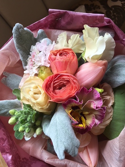 パンジーだけをまとめて小さい花束にしてもとってもかわいいブーケになります。
