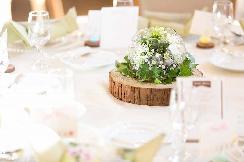 隣のテーブルとは違った形がくるように、お花の配置もこだわり打ち合わせを進めていきました