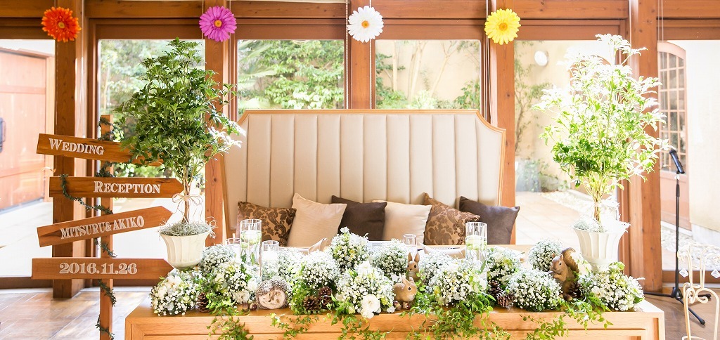 お花は大好きなかすみ草をメインに使用し、森の中に動物たちも祝福しにきてくれたような