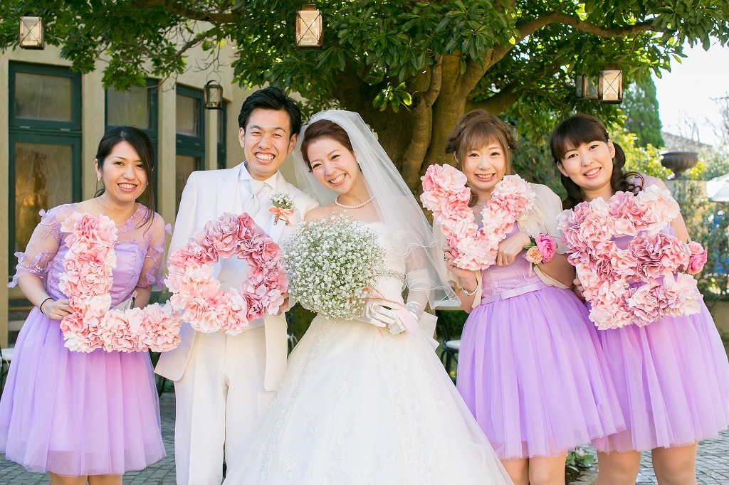 お揃いのパープルの衣装で、結婚式をさらに明るく華やかにしてくださいました![]()