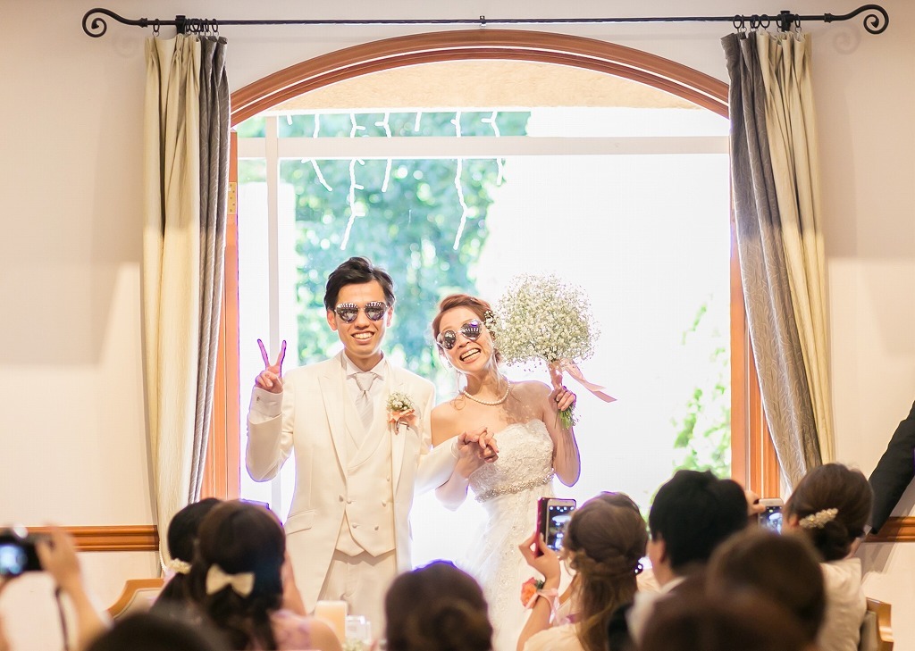 先程の挙式とは一転、緊張も解けリラックスした雰囲気で皆様の前へ登場です
