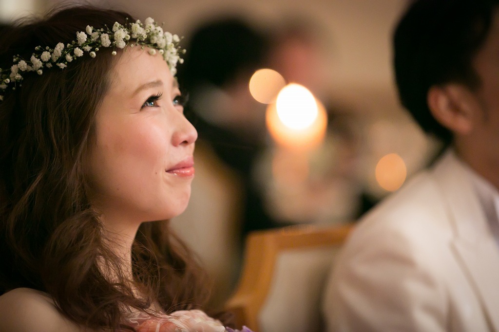 何も知らないご新婦様は先にご用意した映像を見た段階で、すでに目の中は涙でいっぱいです