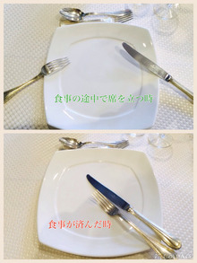 また、途中で席を立つ際はナイフとフォークをハの字に置くのが一般的です。