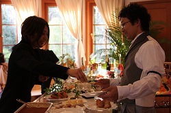 シェフが腕によりを掛けたデザートをいつもとは違う目線でお皿に取ります