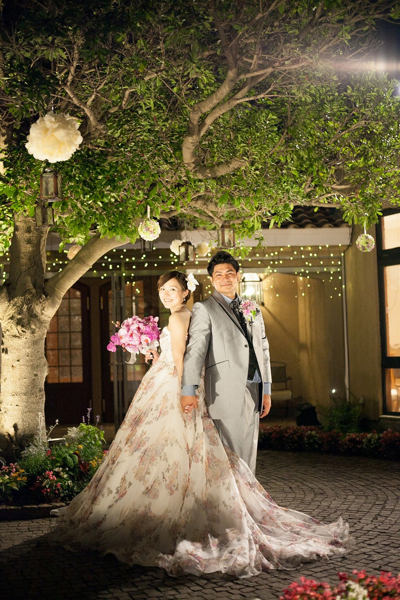 お色直しは総シルクの花柄ドレスに!ご新郎様もジャケットを着てキリッと!!