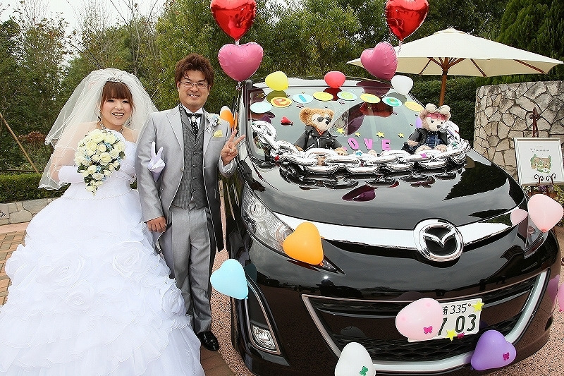 少し早めに来てお二人で一生懸命飾り付けしたウェルカムカー