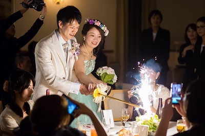 お色直しの再入場演出は卓上花火で会場キラキラと輝いておりました