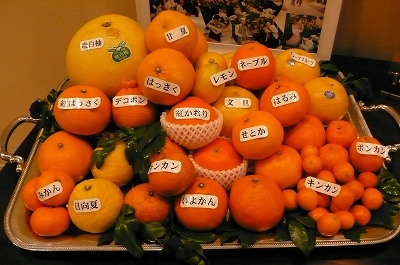 みかん、甘夏、ポンカン、デコポン、キンカン、伊予柑、はっさく、レモン、ネーブルなどなど柑橘類もお出迎えみかん