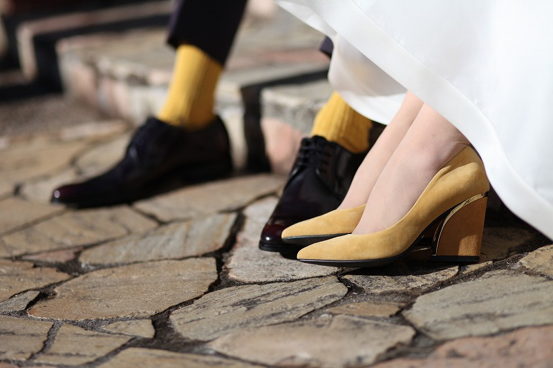 テーマカラーに合わせた靴とソックスも用意ハイヒール黄色ソックス