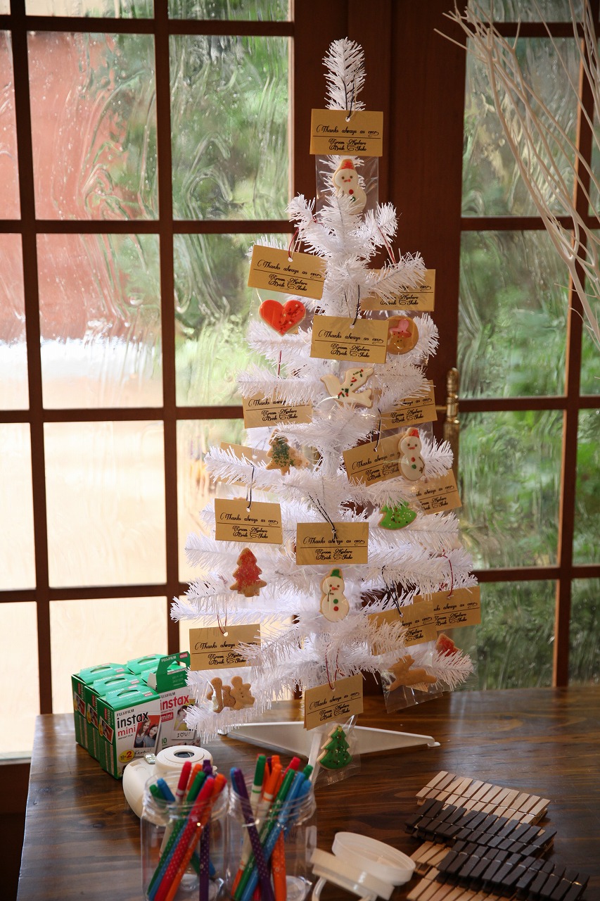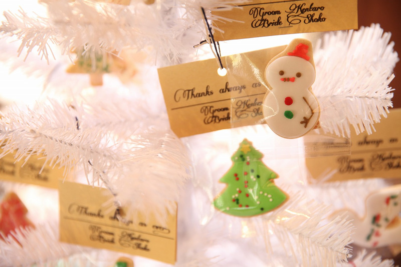 雪だるまや星、ミニツリーなどオーナメントをイメージしたクッキーをツリーに装飾![]()