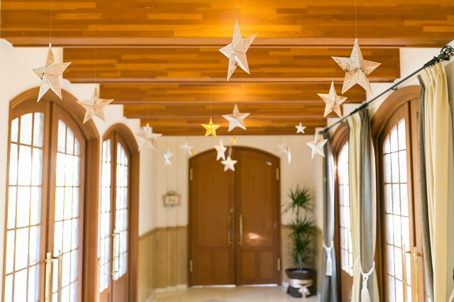 天井から星を飾ることで見上げれば星これから始まるパーティーを迎えてくれます![]()