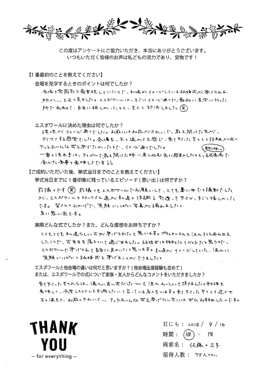 または、エスポワールでの式について家族・友人からどんなコメントを頂きましたか?
