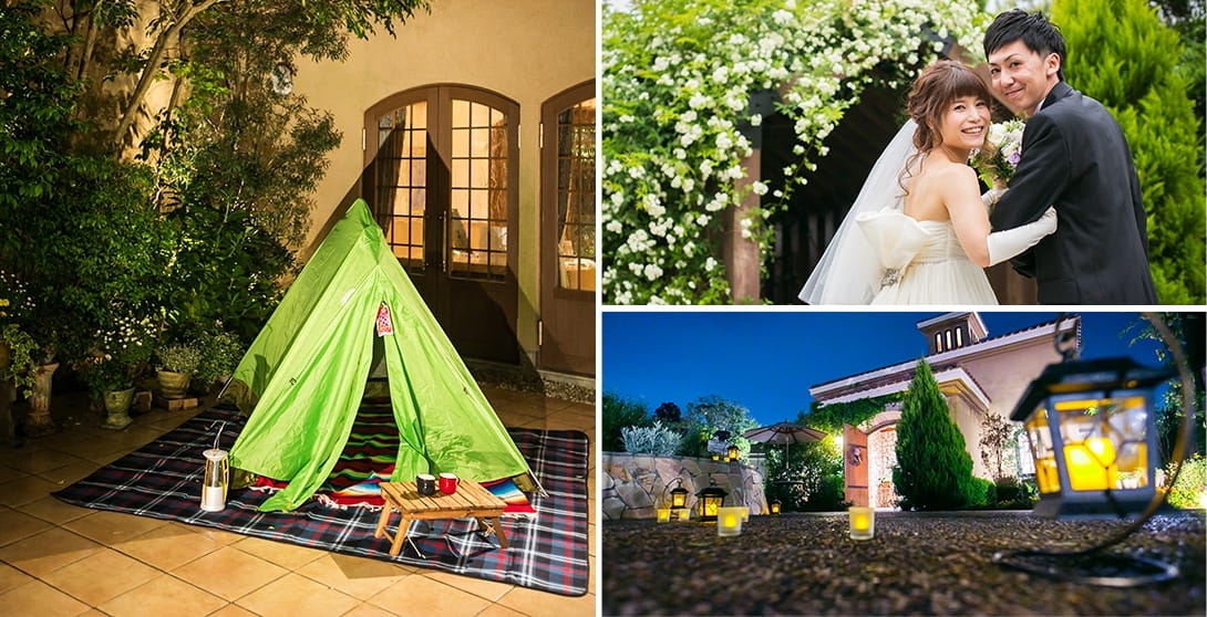 キャンプフェス風ウエディングも大成功だったと思います。夜のガーデンでデザートブッフェなんて、本当に想像を超えるおしゃれな空間でした。好きな音楽と、おいしい料理と、おしゃれな空間と、たくさんの笑顔、もう最高でした。