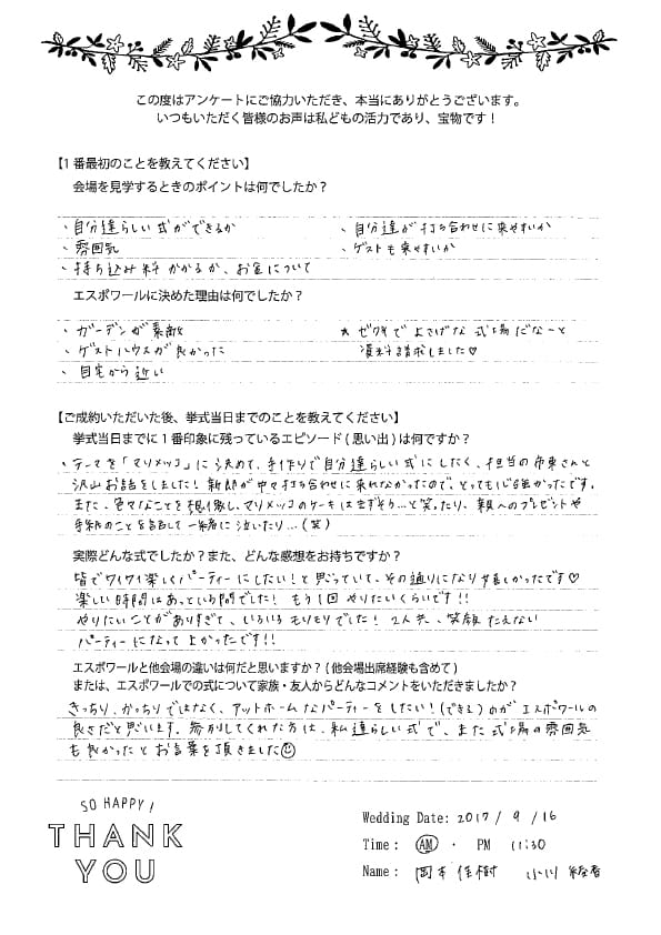 または、エスポワールでの式について家族・友人からどんなコメントを頂きましたか?