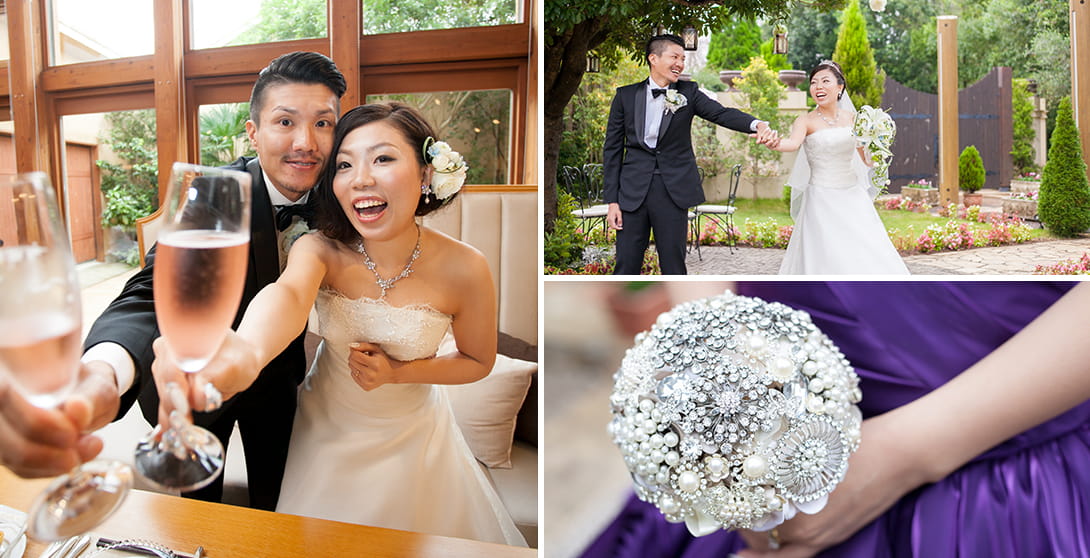 特にブーケは1番こだわりました。どうしてもブローチブーケがやりたくてお願いしたら、 作りがいがあると材料集めから頑張って下さって、世界に1つだけの素晴らしいブーケが出来上がりました。