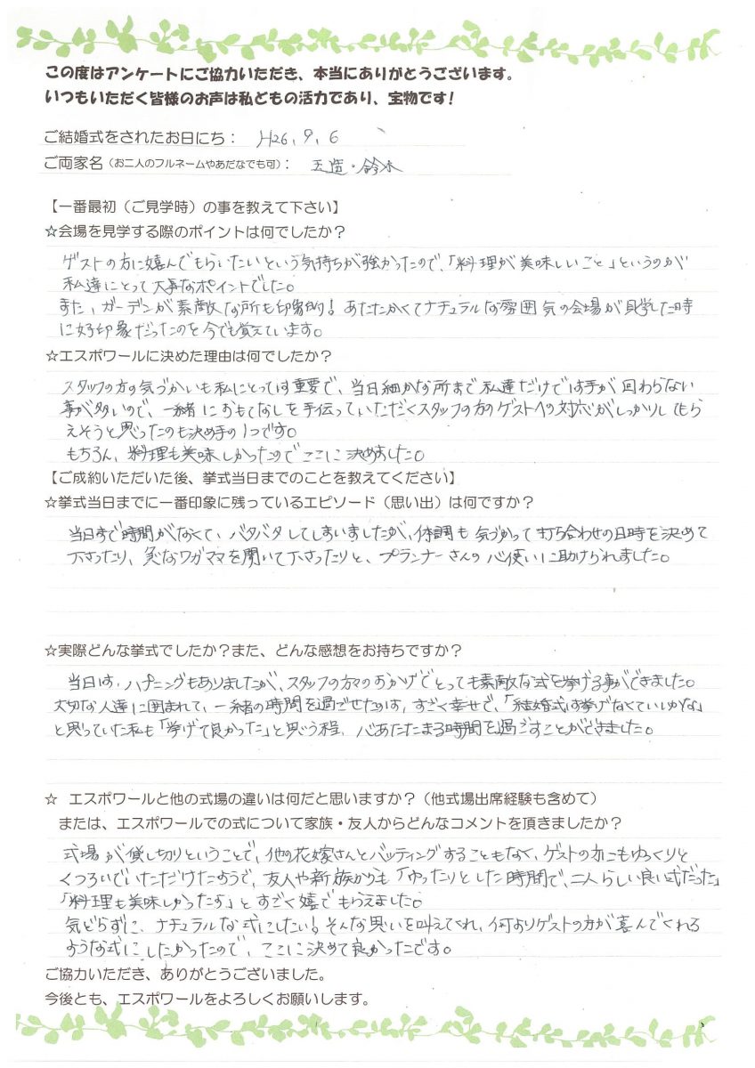 または、エスポワールでの式について家族・友人からどんなコメントを頂きましたか?