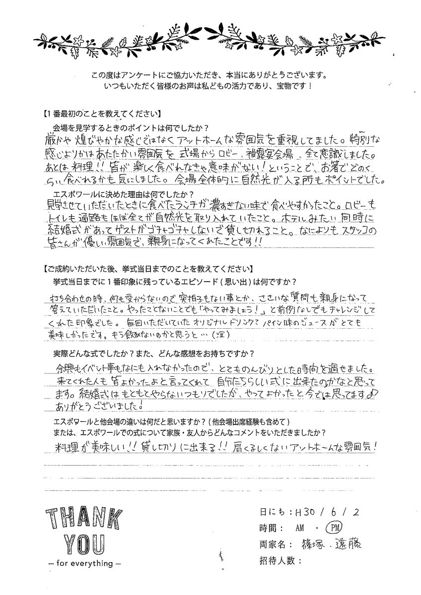 または、エスポワールでの式について家族・友人からどんなコメントを頂きましたか?