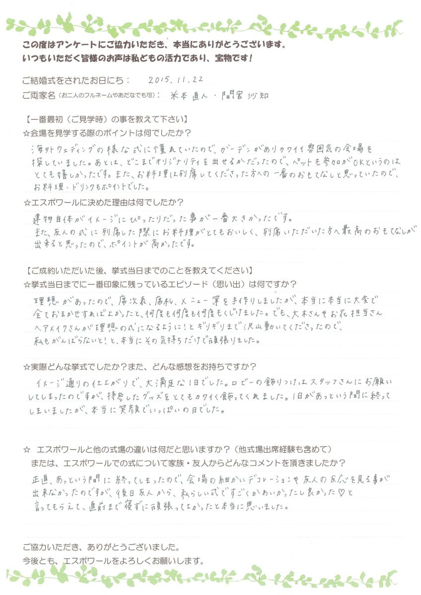 または、エスポワールでの式について家族・友人からどんなコメントを頂きましたか?