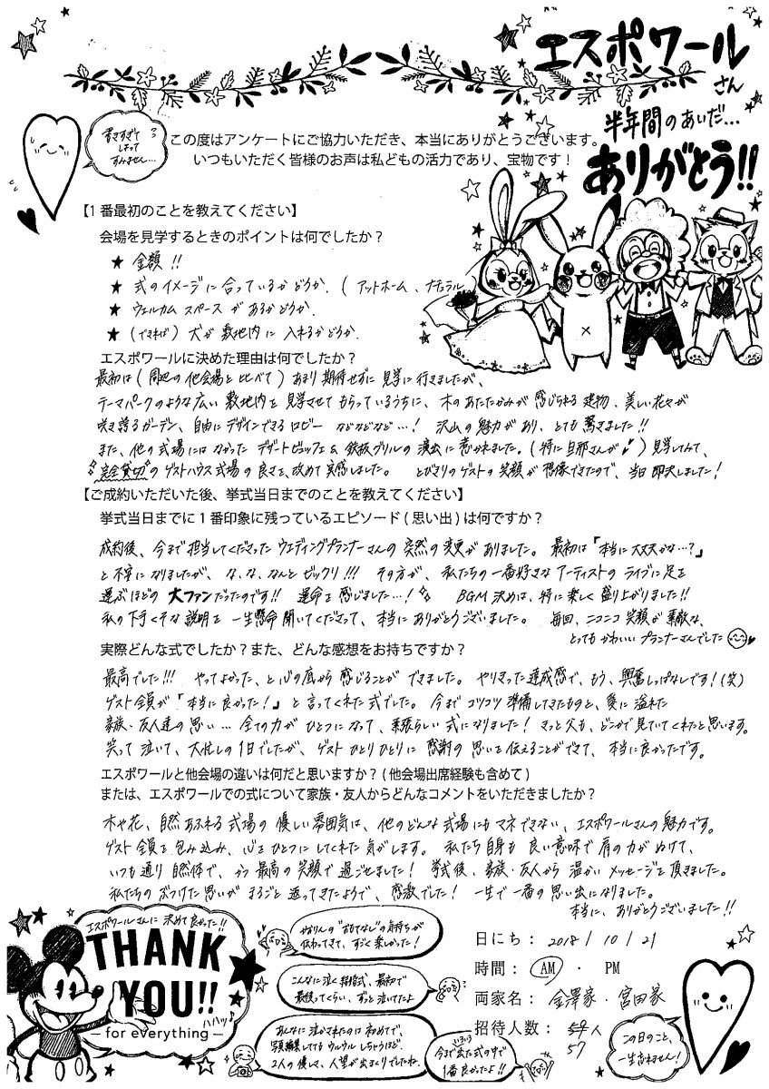 または、エスポワールでの式について家族・友人からどんなコメントを頂きましたか?