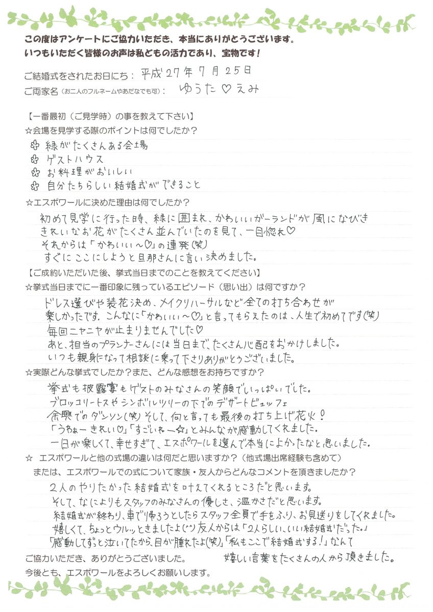 または、エスポワールでの式について家族・友人からどんなコメントを頂きましたか?